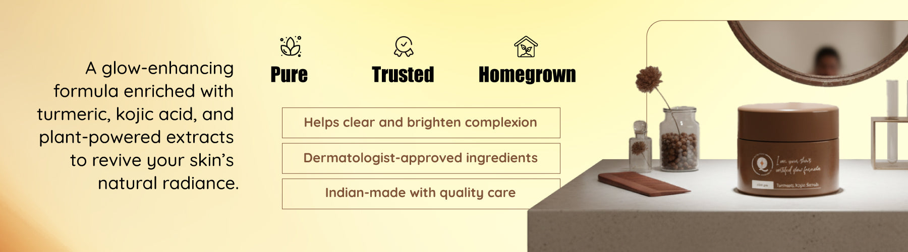 Meet your skin’s glow-boosting scrub powered by Turmeric + Kojic Acid + Kaolin Clay + Botanical Oils.